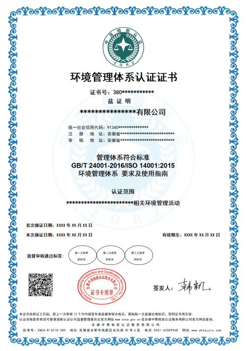 ISO14001认证全称是ISO14001环境管理体系认证,是指依据ISO14001标准由第三方认证机构实施的合格评定活动。ISO14001是由国际标准化组织发布的一份标准,是ISO14000族标准中的一份标准,该标准于1996年进行首次发布,2004年分别由ISO国际标准化组织对该标准进行了修订,最新版本为ISO14001-2015。