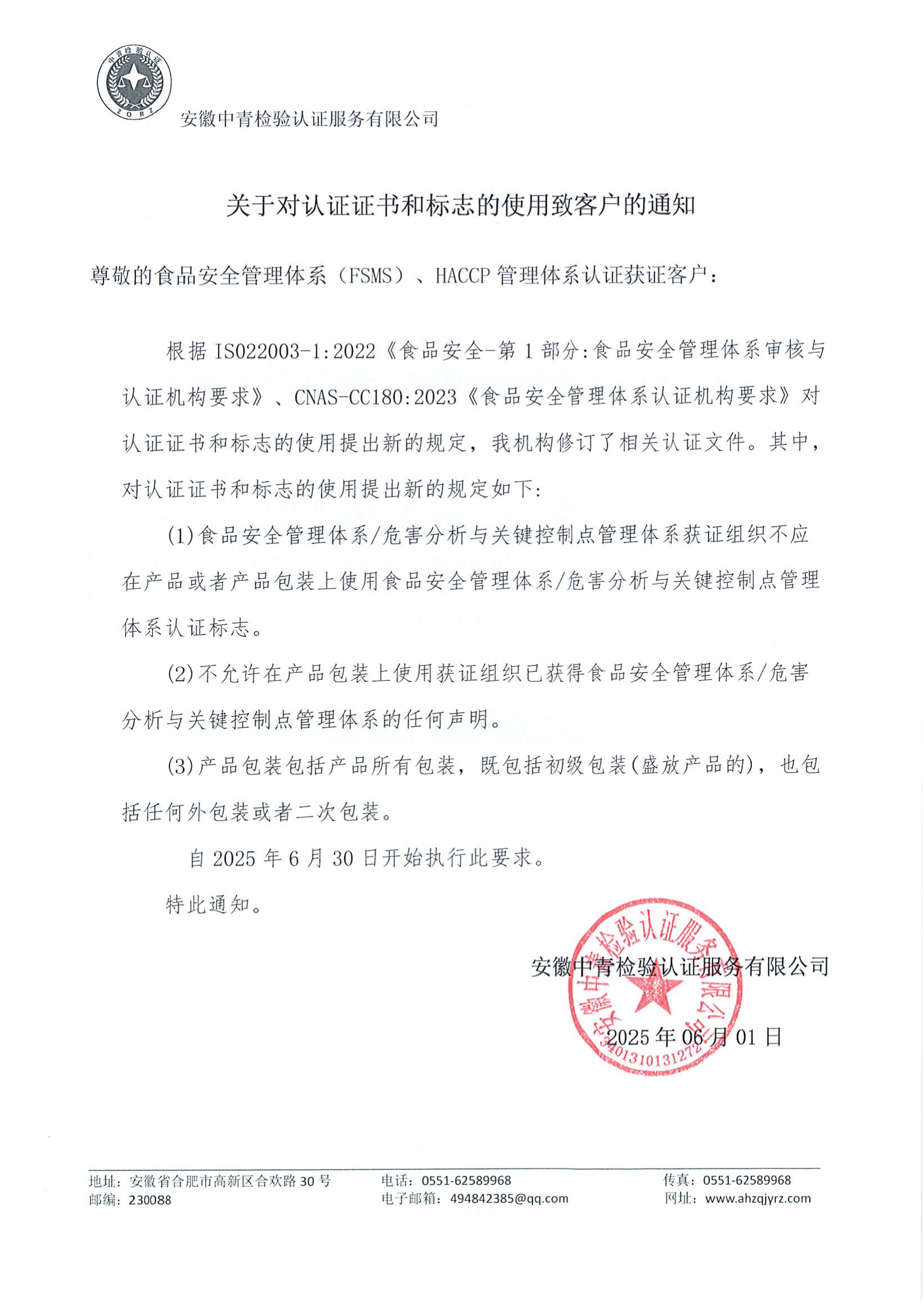 关于认证证书和标志的使用致客户的通知